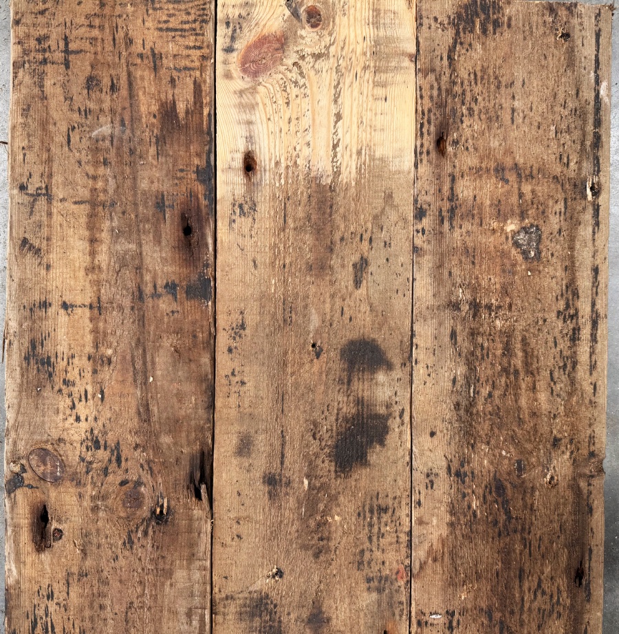 Reclaimed Canadian pine roof boards 155mm (6 1/8 inch). These chocolate brown roof boards are 23mm in depth and 155mm wide so should be a great fit for most Victorian houses. Supplied unfinished so will require sanding and finishing.