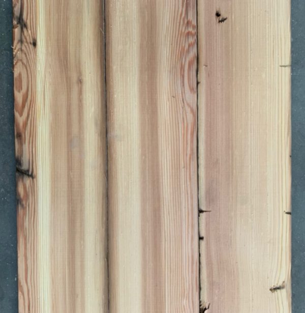 Reclaimed re-sawn pine floorboards 135mm (5 1/4 inch). We have cut these pine floorboards from a batch of reclaimed joists that we salvaged from an old warehouse in London. Re-sawing old joists stops them going to landfill and is a good way to produce slow grown old pine boards for flooring or wall cladding. Supplied unfinished so will require sanding and finishing.