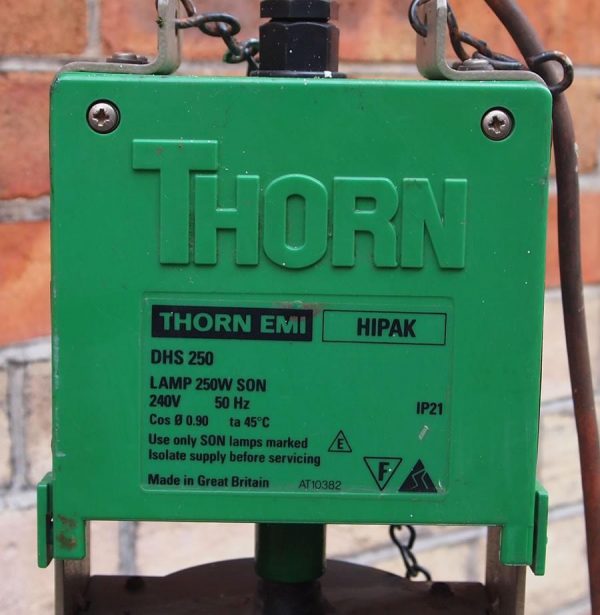 Large Thorn EMI factory light. Please note this light is sold as seen and will have to be checked by a qualified electrician before being used.